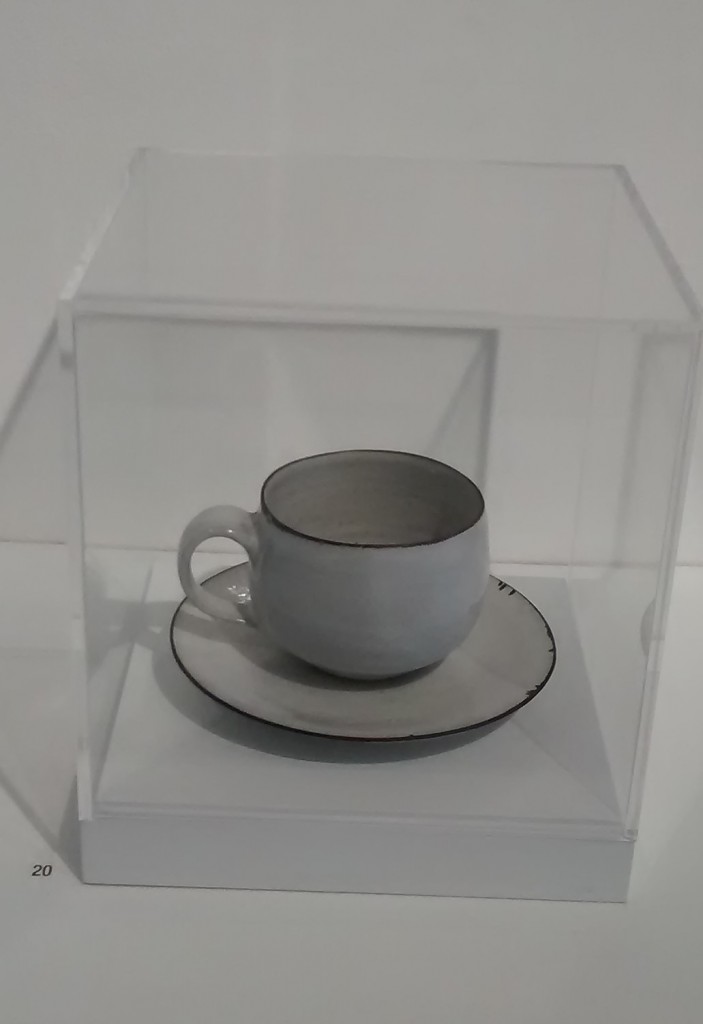 I head round the corner to Austin Desmond Fine Art and their current show Aspects of Modern British Art which, to paraphrase that esteemed critic Forrest Gump is a bit like a box of Quality Street with, fortunately, more coffee creams than gritty pralines. In fact, some of the stuff here makes one proud to be a Pom. The Edward Burra watercolour, the Ivon Hitchens print, paintings by John Hoyland and Victor Pasmore, drawings by Roger Hilton and Colin Self are all pretty good, even if they may be a bit parochial. But what’s wrong with that? The standout item for me, however, is Lucie Rie’s very simple, very beautiful ceramic cup and saucer, which could be yours, or even mine, for just £1,000.  And who wouldn’t want their afternoon cuppa to be served in this? Although, by the same token, who, having supped, would have the nerve to stick it in the dishwasher and press the button? I get into a discussion about this conundrum with the charming woman who’s keeping shop. How should one treat this beautiful object? Should it remain forever sheltered in its glass case or should it be used for the purpose for which it was originally created? Perhaps the answer is to buy it as a gift for someone and give it to them without revealing its cost, for fear of inhibiting them from using it. On the other hand, what’s the point of giving someone a really expensive gift if you can’t let them know how generous you’ve been? In the end, my final suggestion is that one should buy the cup, down one drink and then throw it into the fireplace. I think that’s probably the best way to release the elan vital.