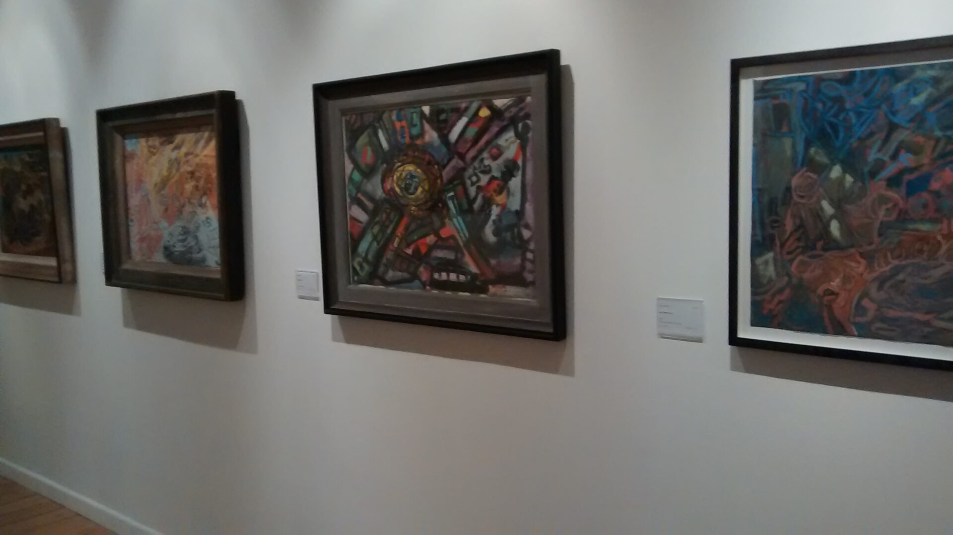 As soon as I have a spare grand then that’s what I’m going to do, in the meantime I head east and cut back across Southampton Street to get to the October Gallery for a comprehensive display of paintings by Gerald Wilde, not a very familiar name but perhaps one who should be. Most of the work seems to come from the immediate post-war period when, like many of his contemporaries, he set about trying to find an appropriate painterly language for the new, modern world. What we get are variations on figurative themes painted with thick black lines reminiscent of Rouault. Evidently he found this form no longer sufficient to convey the post-Holocaust, post-Hiroshima world and so, along with transatlantic counterparts like Pollock and Rothko, experimented with using a sort of Surrealist automatism to overlap the figurative elements and came up with new forms that satisfactorily squared the abstract circles that he was working with. If not quite as fresh and radical as the different Americans solutions that gave rise to a whole industry of Abstractionism, they retain a definite sense of power and accomplishment.