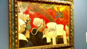 After which,I have to race through a few rooms in order to make a quick dash round an impressive Impressionist round-up which, again, boasts a very respectable display with some Degas dancers, Gauguins from both Brittany (see below) and Tahiti, a few lovely speckled Seurats, a nicely jagged Van Gogh landscape with olive trees and a Cezanne showing his favourite Mont Sainte-Victoire fracturing into the shards that helped launch the 20th century’s subsequent exploration of Modernistic experimentation.